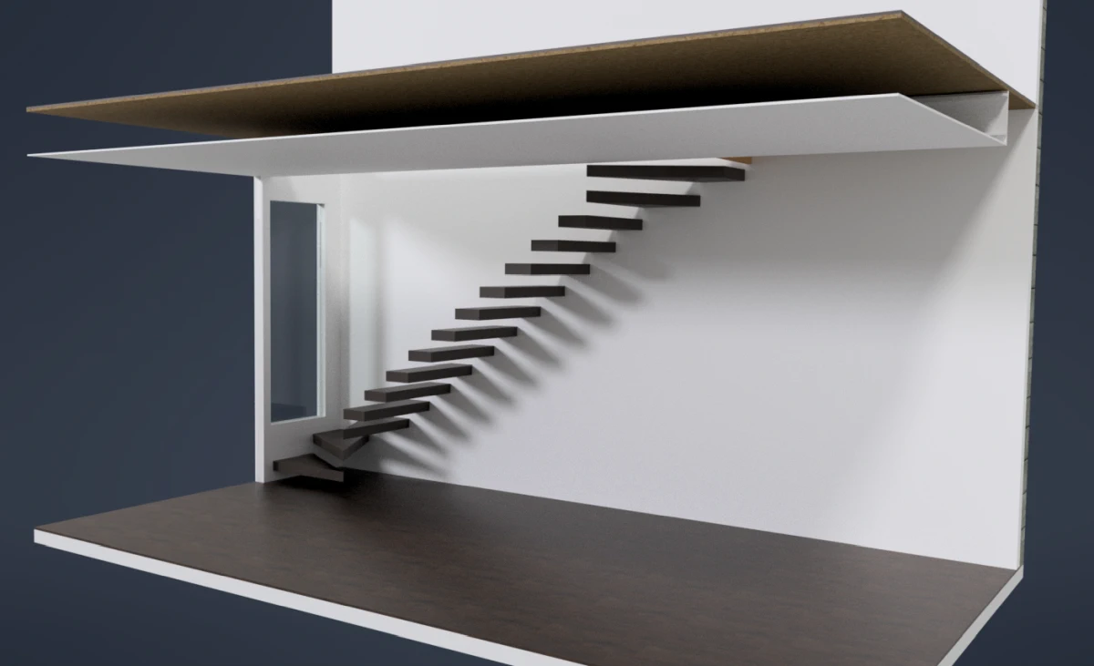 Cantilever stairs create a striking floating effect, with steps that appear to extend seamlessly from the wall. This modern design combines strength with elegance, making it a popular choice for contemporary spaces.